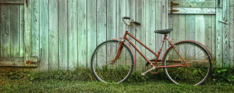 Svart cruiser cykel med orange frampakethållare.